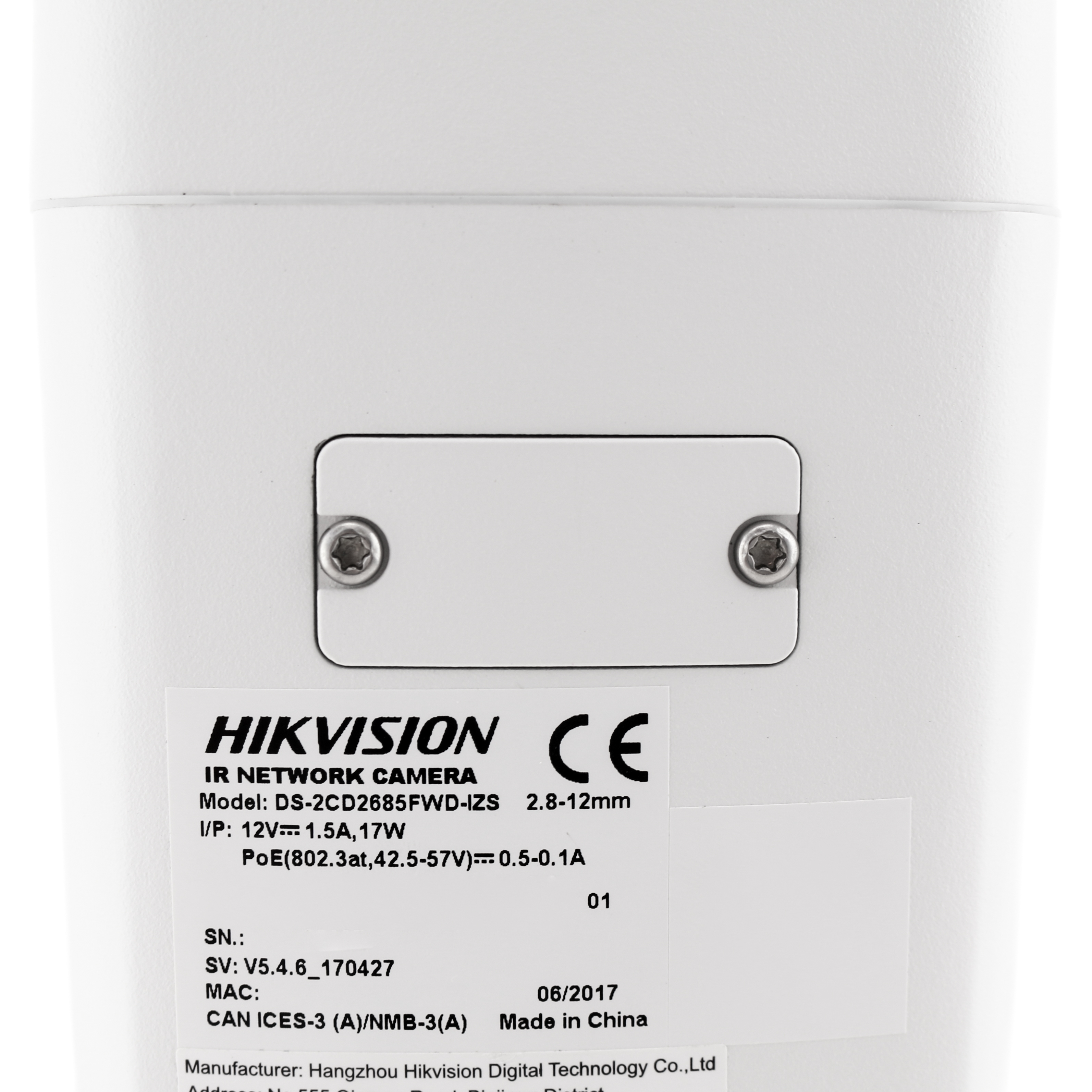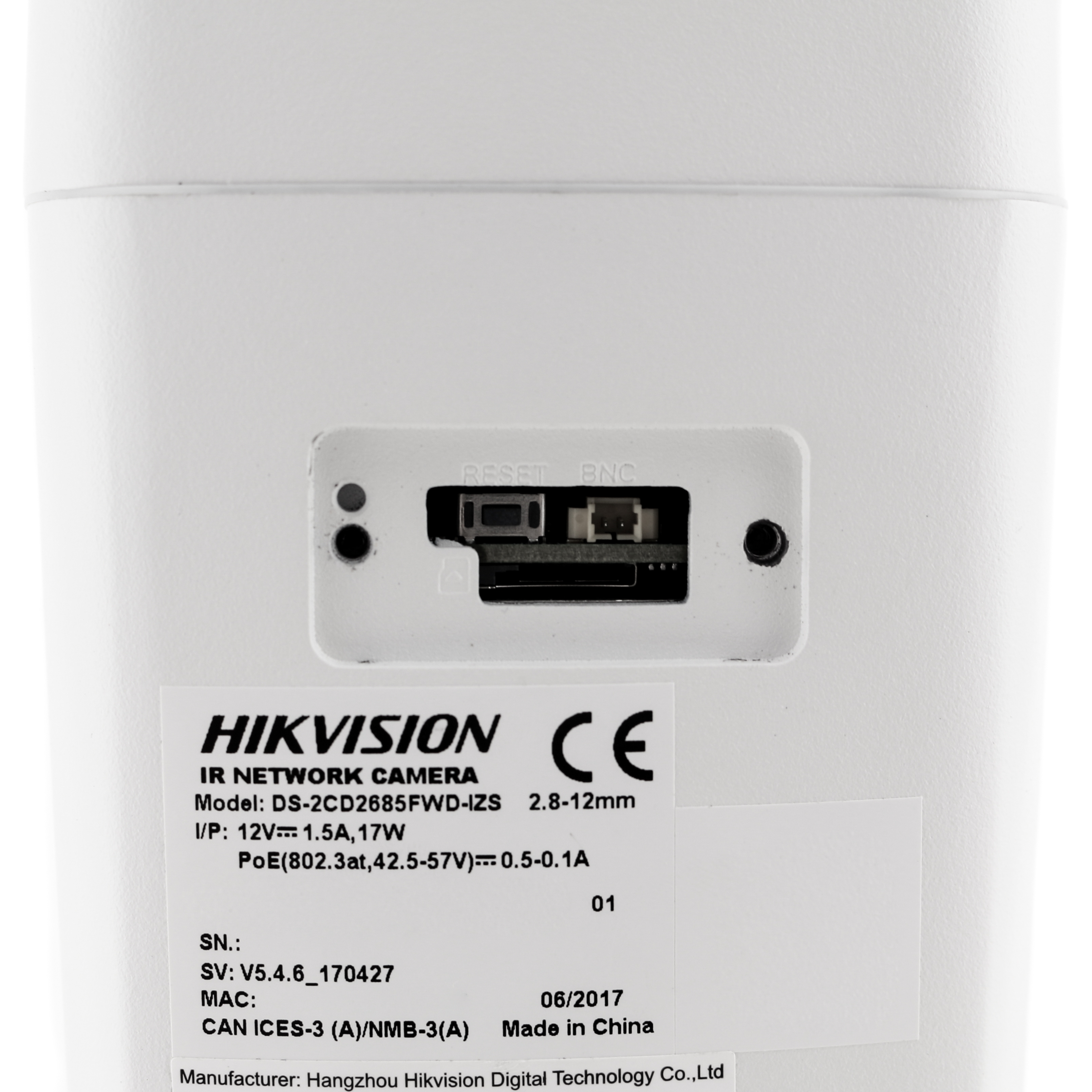 The DS-2CD2685FWD-IZS has an optional SD card slot and uses H.265+ compression to greatly reduce bandwidth and storage needs. This camera can be powered with a 12VDC power supply or by PoE.