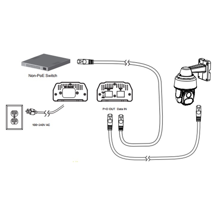 N.B. The PoE output should only be connected to an IP camera. It should not be connected to non-PoE devices, such as a PC's LAN port