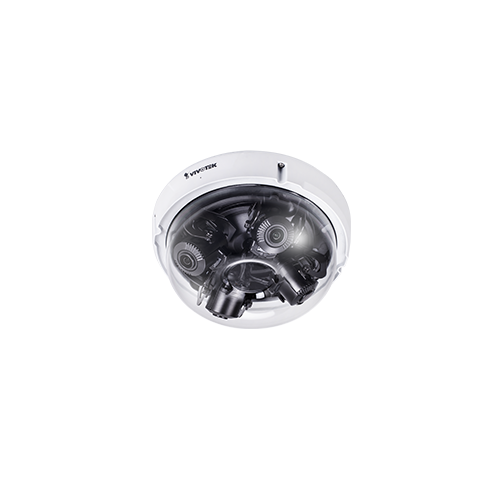 The Vivotek MA8391-ETV is a 12MP multi-sensor adjustable dome camera with 1/2.8" progressive CMOS chip and a focal length of 2.8 - 8mm.